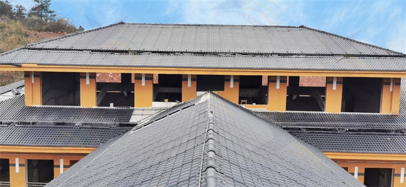 总的来说,树脂瓦不仅在防水性能上具有显著优势,而且安装简便,为屋面漏水问题提供了一个高效、可靠的解决方案。选择树脂瓦,能够让你远离屋面漏水的烦恼,享受持久的安心保障。